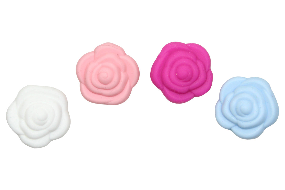 A large, imaginative selection of motif beads, silicone beads and other materials awaits you in the Zwergehuus online shop. Thanks to the numerous motifs, there are no limits to your creativity. For example, combine mini stars with mini hearts or sweet animal motifs to make chains according to your wishes. Of course, the handicraft beads are available in different colors. From sun yellow to princess pink to beautiful dark violet, everything is included. This will expect pure variety - even if you only use a kind of motif beads for your nuggikette. Simply mix stars or hearts in different tones and conjure up a very special rainbow for your child. The silicone beads are sweat and saliva-proof and also pollutant-free, color-right and 100% free from BPA. In short: in our online craft shop you only get the best handicraft material. Create chains for your own child or make them a gift to the offspring of friends. Homemade chains are among the most beautiful gift ideas and ensure bright eyes on every occasion. Since they always combine the silicone beads and motif beads differently, there is no trace of monotony.
