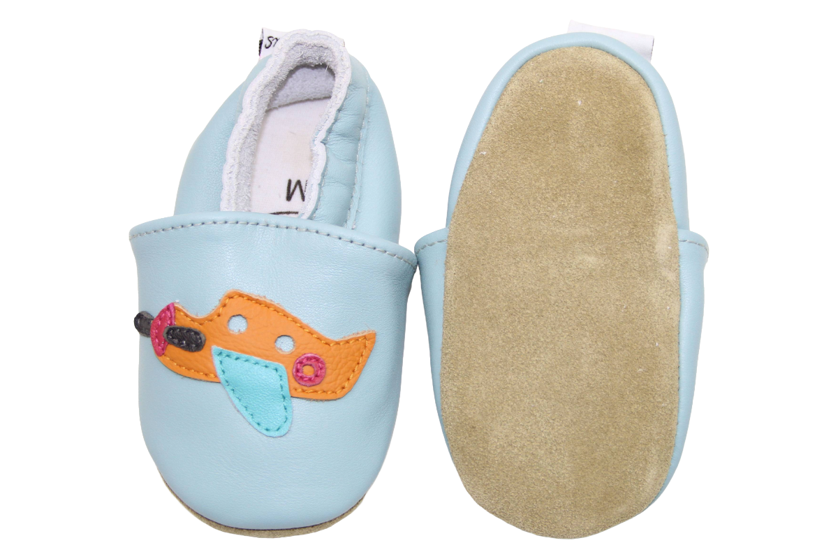 Leder hat von Natur aus eine leichte Anti-Rutsch-Wirkung – besonders auf Parkett oder Laminat. Auf sehr glatten Böden kann es trotzdem rutschig sein (z.B. Fliesen). Unsere Grössen ab 12 Monate haben eine Gummisohle.