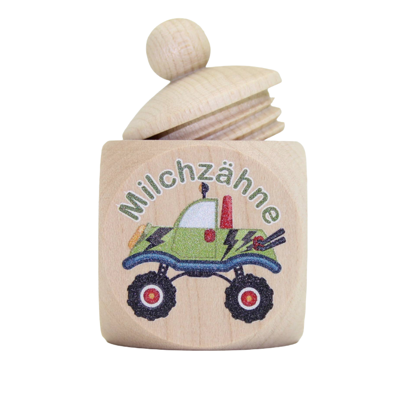 La prise de bois sous la forme d'un cube a une fermeture pratique de rotation afin que les premières dents inhabituelles puissent également être maintenues en toute sécurité.