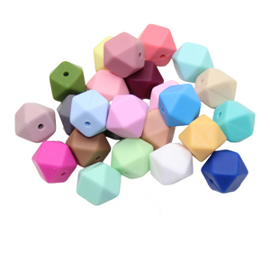 Die Silikonperlen Hexagon sind zur Herstellung von Nuggiketten, Greiflingen, Kinderwagenketten und anderem Babyspielzeug für Säuglinge und Kleinkinder geeignet.